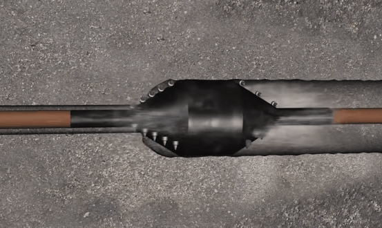 回拖是定向穿越的最后一步,也是較為關(guān)鍵的步驟。在管線回拖階段,因?yàn)檎麄(gè)穿越孔內(nèi)已充滿了泥漿,在回拖管線的過(guò)程中,泥漿的排量與壓力均不應(yīng)太大,隨著管線進(jìn)入穿越空洞,孔內(nèi)的泥漿將被管線擠出,因此管線回拖應(yīng)緩慢進(jìn)行。